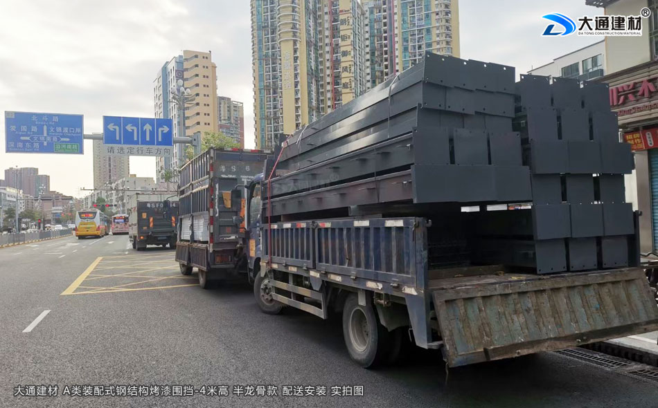 大通建材A類裝配式圍擋4米高烤漆款 配送到深圳羅湖工程項目施工現(xiàn)場