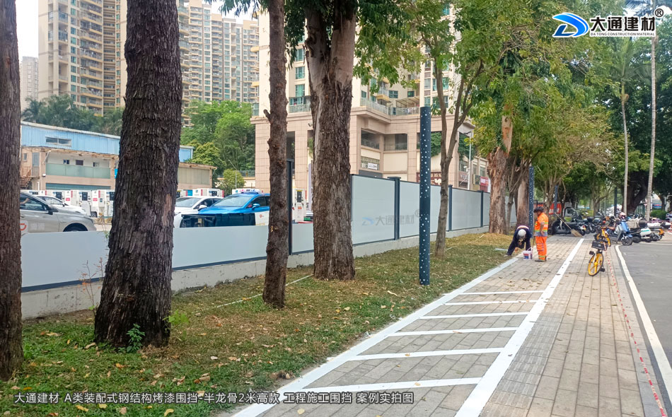深圳城市建設城區改造工程項目選用大通建材2米高裝配式圍擋烤漆A款,具有結構牢固、可抗臺風、可回收循環利用、美觀、環保等特點,是目前業內倍受喜愛的圍擋之一。