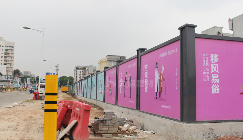 深圳新標準鋼圍擋 安全、綠色、美觀——堅持深圳質(zhì)量,關(guān)注城市美學,培育精益求精的工匠精神,結(jié)合深圳開放、創(chuàng)新、現(xiàn)代、濱海的城市的特征和公益宣傳的要求,在構(gòu)造形式統(tǒng)一的前提下,提供具備不同區(qū)域環(huán)境特點的外觀設計方案,并通過外觀裝飾使鋼結(jié)構(gòu)式圍擋和砌筑式圍擋形成統(tǒng)一的風格;再結(jié)合城市區(qū)域特點,分片區(qū)、分道路、分街景各自選用同類風格圍擋,在營造美觀、整潔的城市環(huán)境的同時,實現(xiàn)圍擋風格區(qū)域性的協(xié)調(diào)統(tǒng)一。