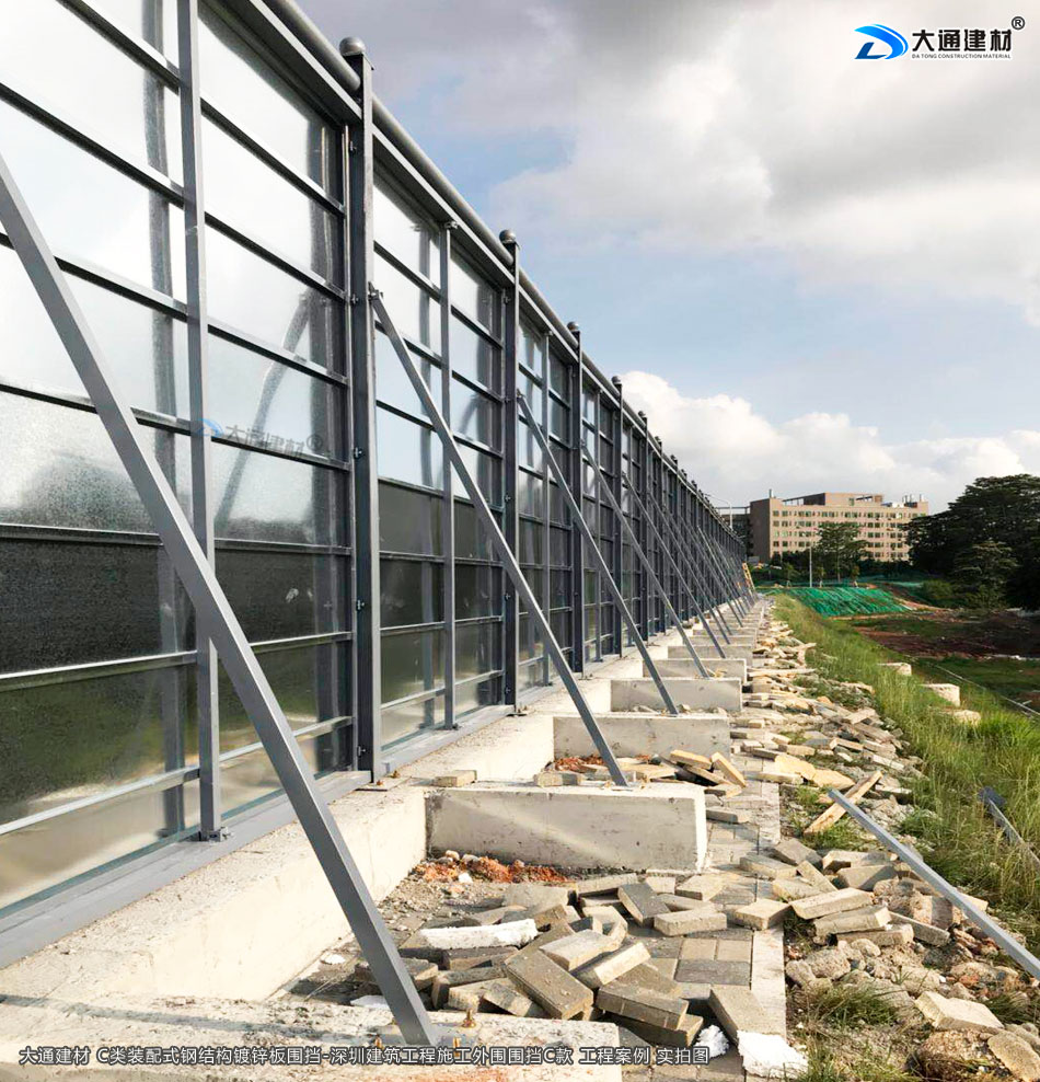 深圳市大通建材鋼圍擋C類定制款采用框架式結構,輕鋼材料降低自重,結構穩固,抗風強度高。鋼圍擋核心受力關鍵點由立柱、斜拉桿和橫稱加強筋共同構成,三重受力防護充分提高了圍擋的抗傾覆穩定性,抗剪強度和抗彎強度。通過受力模型計算,抗風等級大于10級;快速安裝,標準化拼裝; 循環使用,環保耐用; 耐火阻燃,不怕高溫等特性 適用于施工工地圍擋隔離防護。