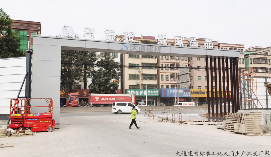 深圳市大通建材有限公司生產(chǎn)的標準工地大門,廠家直銷,美觀大氣、穩(wěn)固耐用;適用于市政建設(shè)施工、房地產(chǎn)項目施工、地鐵項目施工、管網(wǎng)改造等工程。更多詳情請致電梁先生13826562448