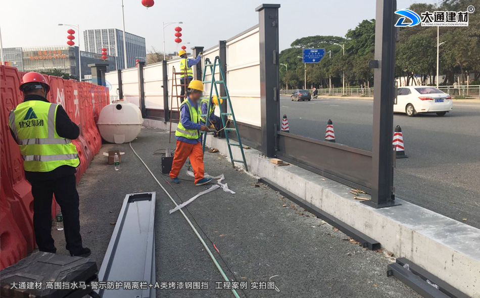 大通建材為各項目工程單位提供“手提水馬、高水馬圍擋、膠馬護欄”等產品的生產批發與配送安裝等服務。大通建材高水馬圍擋是城市市政工程和建筑工程文明施工時臨時設置的防護欄,能在一定程度上保證施工安全。同時施工時設置大通圍擋能維護市容景觀的一種全新人性化文明施工的保障設施。