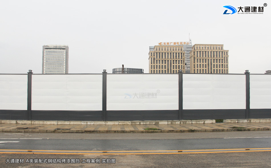 東莞城市建設(shè)圍擋使用大通建材裝配式鋼結(jié)構(gòu)圍擋烤漆A款定制4米高+圍擋基礎(chǔ)塊把施工場所圍起來,為施工安全貢獻(xiàn)一份力量