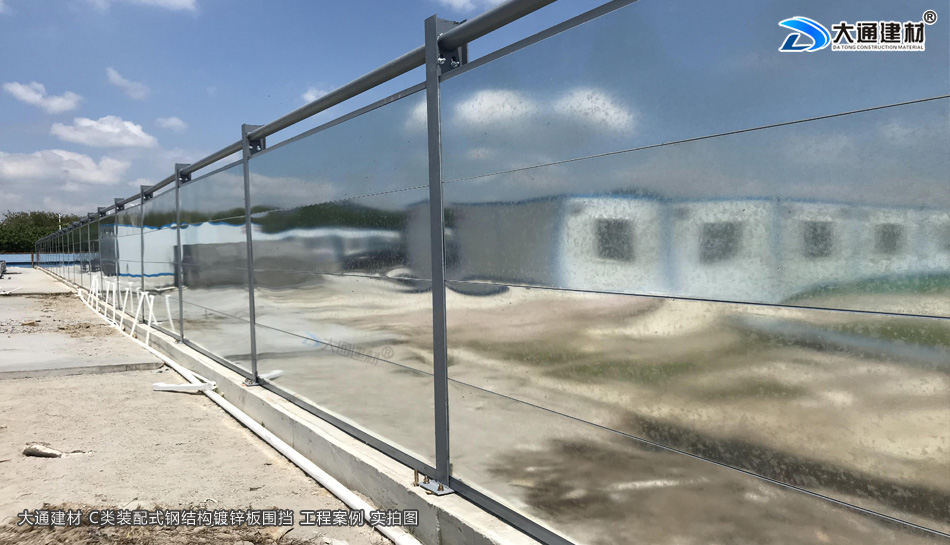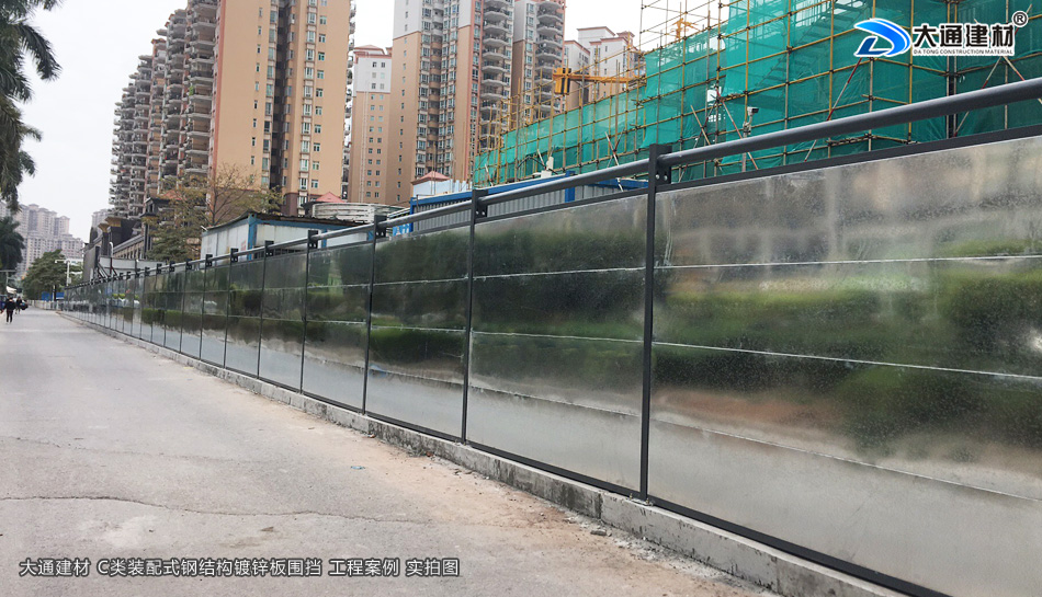 東莞建設工程項目選用深圳市大通建材有限公司生產批發的鋼結構圍擋C類,裝配式圍擋安裝方便,鍍鋅鋼板2.4米高符合工地施工圍擋要求標準