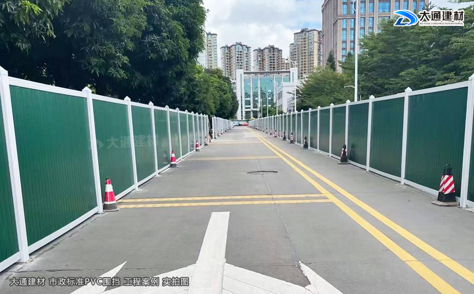 深圳大通建材PVC圍擋表面經(jīng)烤漆工藝噴涂、表面光滑,具有美觀環(huán)保、安全穩(wěn)固、經(jīng)久耐用等特點(diǎn),適合市政道路建設(shè)施工、地產(chǎn)工程項(xiàng)目建設(shè)施工、管網(wǎng)改造施工、路橋維護(hù)施工等工程選用。