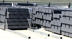 【圍擋入庫】是將生產完成的圍擋進行入庫,進入發貨狀態,在經過前面四種工藝材料切割、墻板折彎、立柱焊接、烤漆后,圍擋已幾乎完成,這時就需要將生產好的配件進行入庫存放,大通建材在生產產區旁新建了占地面面積約5000平米的發貨廠區,達到客戶下單即可安排發貨效率。
