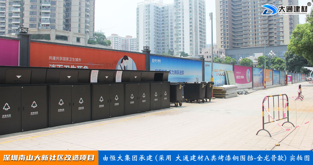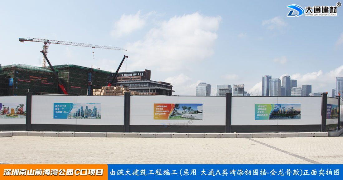 大通建材A類烤漆鋼圍擋-全龍骨款 具有“美觀環(huán)保、抗風(fēng)能力強(qiáng),安全穩(wěn)固、無損耗、無建筑垃圾,拆裝快捷、可多次重復(fù)使用,可疊放、便于運輸和儲存,外觀具有美化城市環(huán)境”等優(yōu)點,適合房地產(chǎn)修建、市政工程、交通道路等工程建設(shè)項目現(xiàn)場使用。