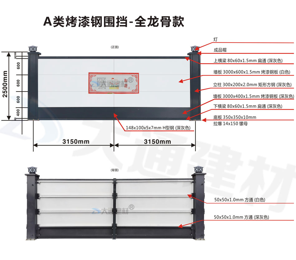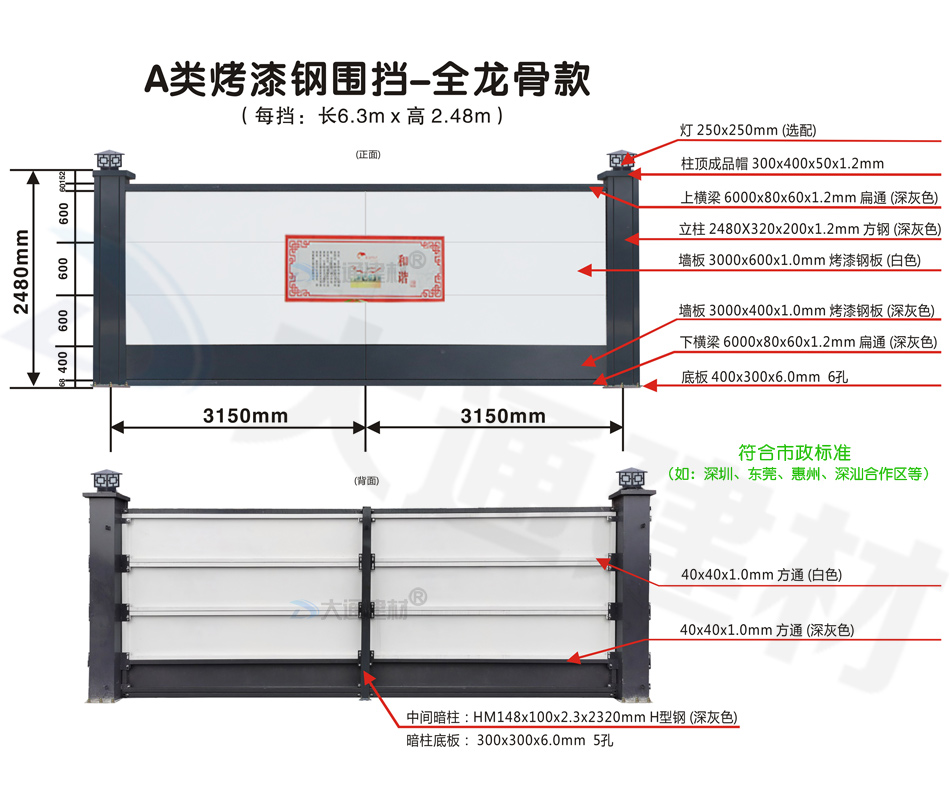 大通 A類烤漆鋼圍擋全龍骨款 生產(chǎn)廠家