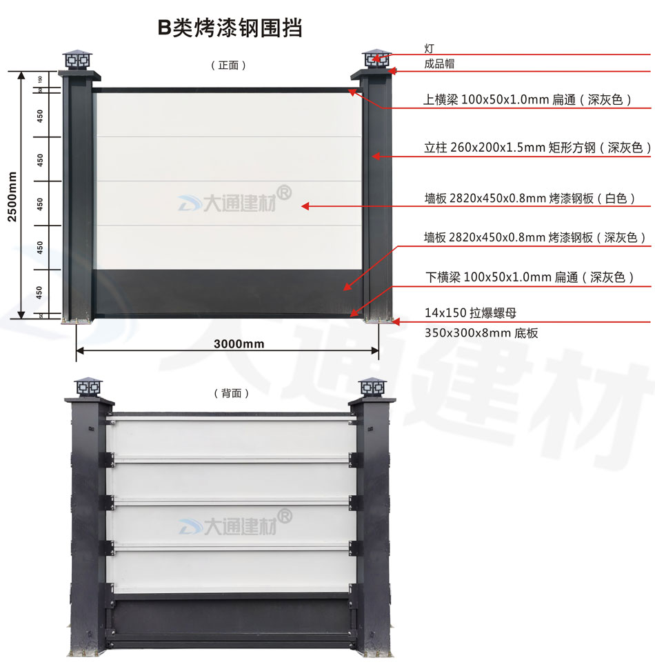 深圳市大通建材工程施工圍擋 B類裝配式鋼圍擋-烤漆款 產(chǎn)品特點