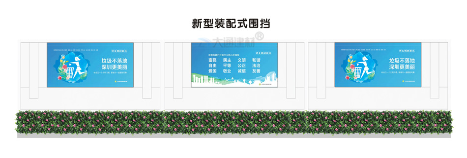 深圳市大通建材有限公司,大格局、通天下! 新型裝配式鋼結(jié)構(gòu)圍擋A款/B款/C款,PVC圍擋,圍擋基礎(chǔ),工地大門等產(chǎn)品生產(chǎn)廠家電話13826562448