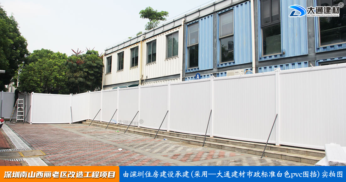 深圳市大通建材有限公司是一家集pvc圍擋研發(fā)、pvc圍擋生產(chǎn)、pvc圍擋銷售、pvc圍擋安裝于一體的圍擋廠家,強(qiáng)大產(chǎn)能,隨時有現(xiàn)貨,下單即可送貨、安裝。已廣泛應(yīng)用到深圳/東莞/惠州/廣州等地區(qū)的房地產(chǎn)建設(shè)施工、市政道路修建施工、小區(qū)改造施工等各類工程項目中,了解更多“大通PVC圍擋”規(guī)格及價格詳情 請咨詢:13826562448